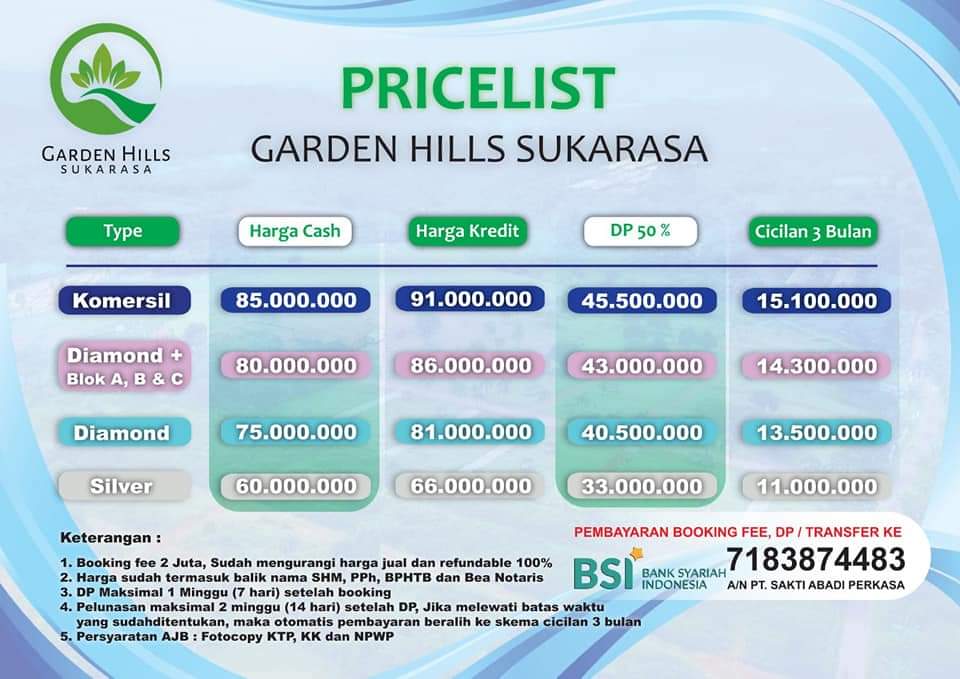 Apabila Anda menutup halaman ini, maka kemungkinan Anda tidak mendapatkan kesempatan memiliki Kavling GARDEN HILLS Perlu di ingat harga tanah setiap Tahun naik.