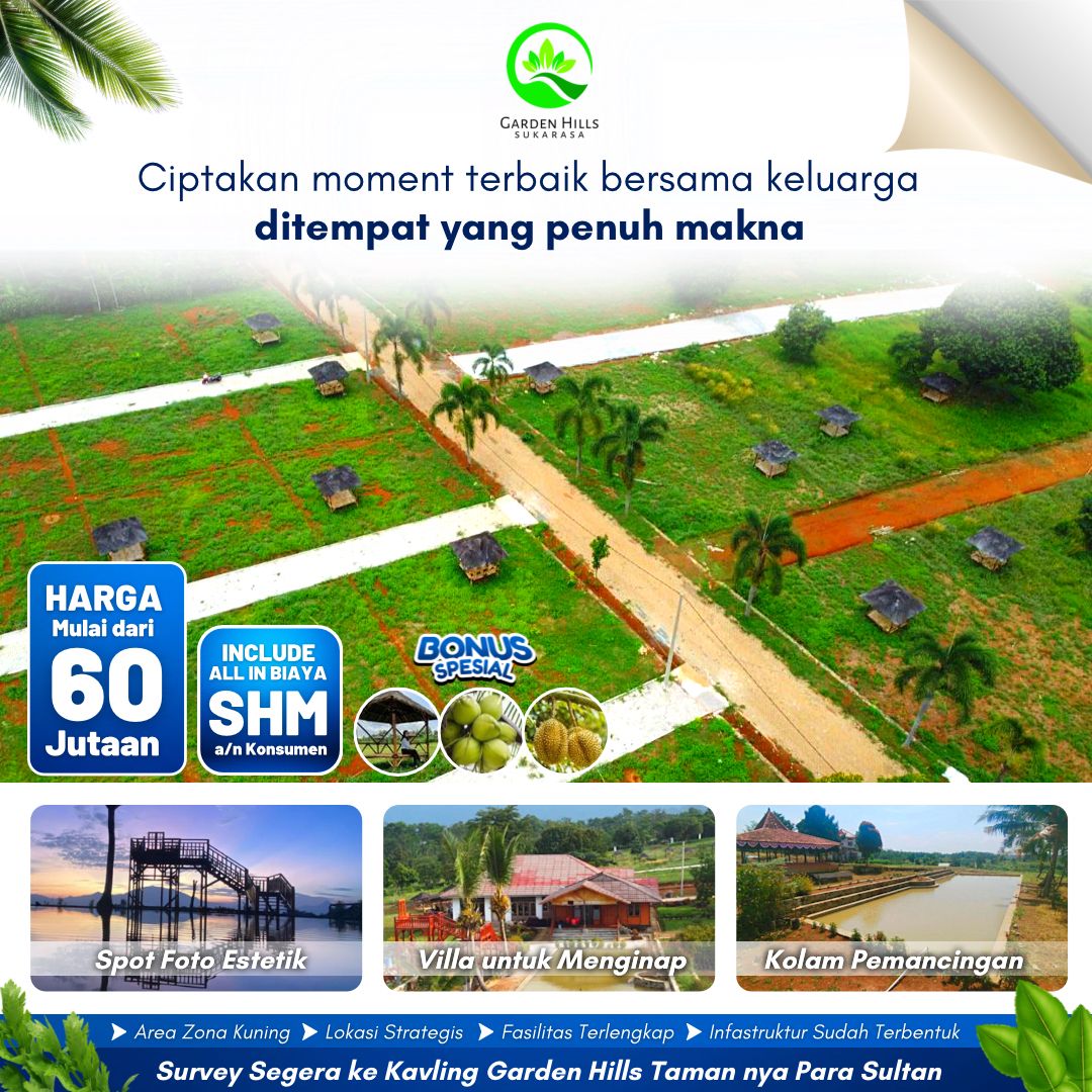 GARDEN HILLS terletak di Desa Sukarasa, Tanjungsari dan posisi berada di Zona Kuning yang artinya bisa di bangun sebagai tempat tinggal. Berada di Bogor Timur yang merupakan daerah perbukitan dengan pemandangan yang indah serta alami, merupakan akses alternatif ke Kawasan Puncak Cipanas, dan juga hanya berjarak beberapa menit dari destinasi wisata sekitar seperti Gunung batu, Situ Rawagede, Curug Ciherang, Villa Kayangan, Curug Cipamingkis, Green Hills Village, Coffe Shop Nuansa Alam dan beberapa wisata lain nya